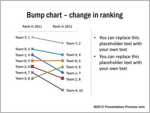 There is a useful way to show change in ranking over a two year period. You can use ‘Bump charts’ innovated by Stephen Few. Here is a chart template for Bump chart: