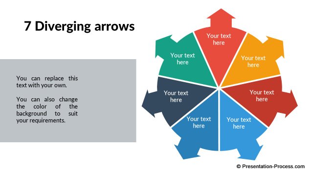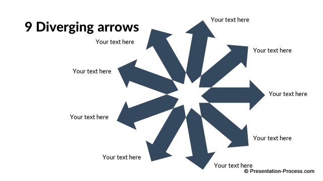 Description: Use these editable diverging and converging arrows in PowerPoint to showcase your business ideas. Use them to show related factors or ideas.
