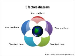 Description: Flower chart template is used in strategy presentations to represent core and related factors. The diagrams add visual interest to business slides. They can be used as agenda slides, bullet alternatives, cluster models etc.