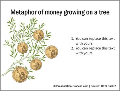 Sometimes phrases we use in everyday language can be used in business situations. Take a look at the following diagram template that conveys the idea of ‘money growing in a tree’: