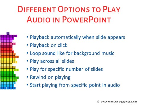 Thus, PowerPoint allows you to play the audio clips in the way you want to suit your specific requirements.