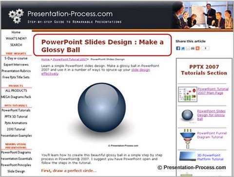 Take a look at the web page in this example. When you read the title, you know that the page is about showing you how to create a glossy ball. There is no clever play of words like you see in the titles of magazine articles.