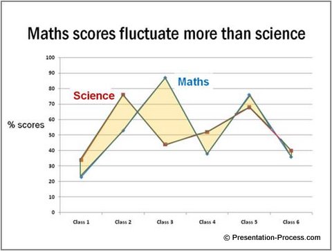 - Make a clear assertion: Title the slide Maths scores fluctuate more than science scores – which is the main point of the slide